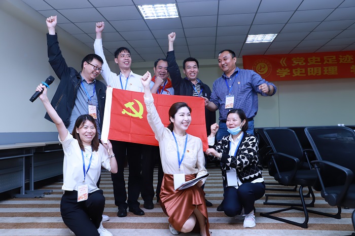 在培訓(xùn)中,趙勝利、陳鵬兩位老師采用任務(wù)模擬、沙盤推演、情景重現(xiàn)、小組研討、競(jìng)賽通關(guān)等方式再現(xiàn)跌宕起伏的歷史事件,圍繞中國(guó)共產(chǎn)黨成立以來的發(fā)展脈絡(luò),以時(shí)間為軸,以事件為點(diǎn),以思想升華為距,從黨史、新中國(guó)史、改革開放史、社會(huì)主義發(fā)展史的百年崢嶸歲月中選取典型情景,將學(xué)員帶入到艱苦卓絕、篳路藍(lán)縷的歷史情境中學(xué)習(xí)黨史、重溫初心、升華黨性、堅(jiān)定信仰。
