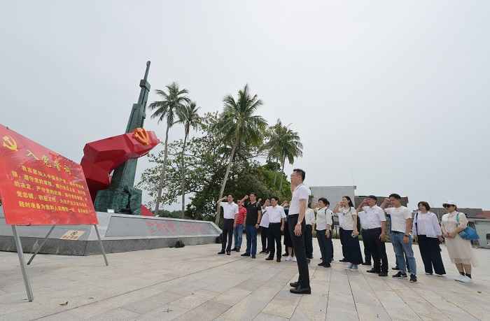 在椰子寨戰(zhàn)斗歷史陳列館,大家觀閱了王文明、楊善集、陳永芹等革命先烈的生平事跡,從大量資料和圖片,學(xué)習(xí)了瓊崖縱隊從無到有、發(fā)展壯大的光輝歷程,共同重溫椰子寨戰(zhàn)斗光輝歷史,緬懷革命先烈,汲取前進力量。在椰子寨戰(zhàn)斗紀(jì)念廣場,大家瞻仰了椰子寨戰(zhàn)斗主題雕塑,深刻理解雕塑寓意。全體黨員在周炳才的帶領(lǐng)下重溫入黨誓詞。