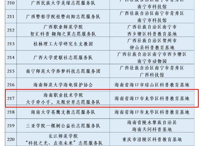 海南職業(yè)技術(shù)學院志愿服務(wù)隊入選2022年全國大學生科技志愿服務(wù)示范團隊