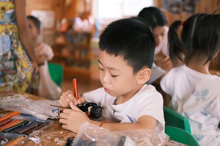 小朋友認真組裝