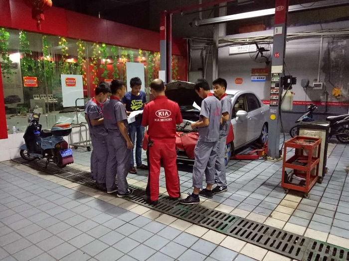 學(xué)生在東風(fēng)悅達(dá)起亞4S店參加崗位技能學(xué)習(xí)(工信學(xué)院供圖)