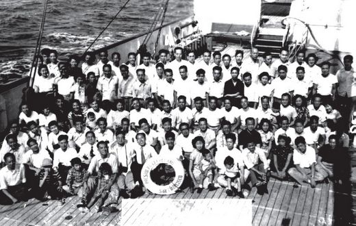 1950年10月, 一批中國(guó)留學(xué)生和學(xué)者從美國(guó)橫渡太平洋回國(guó)。(資料圖片)